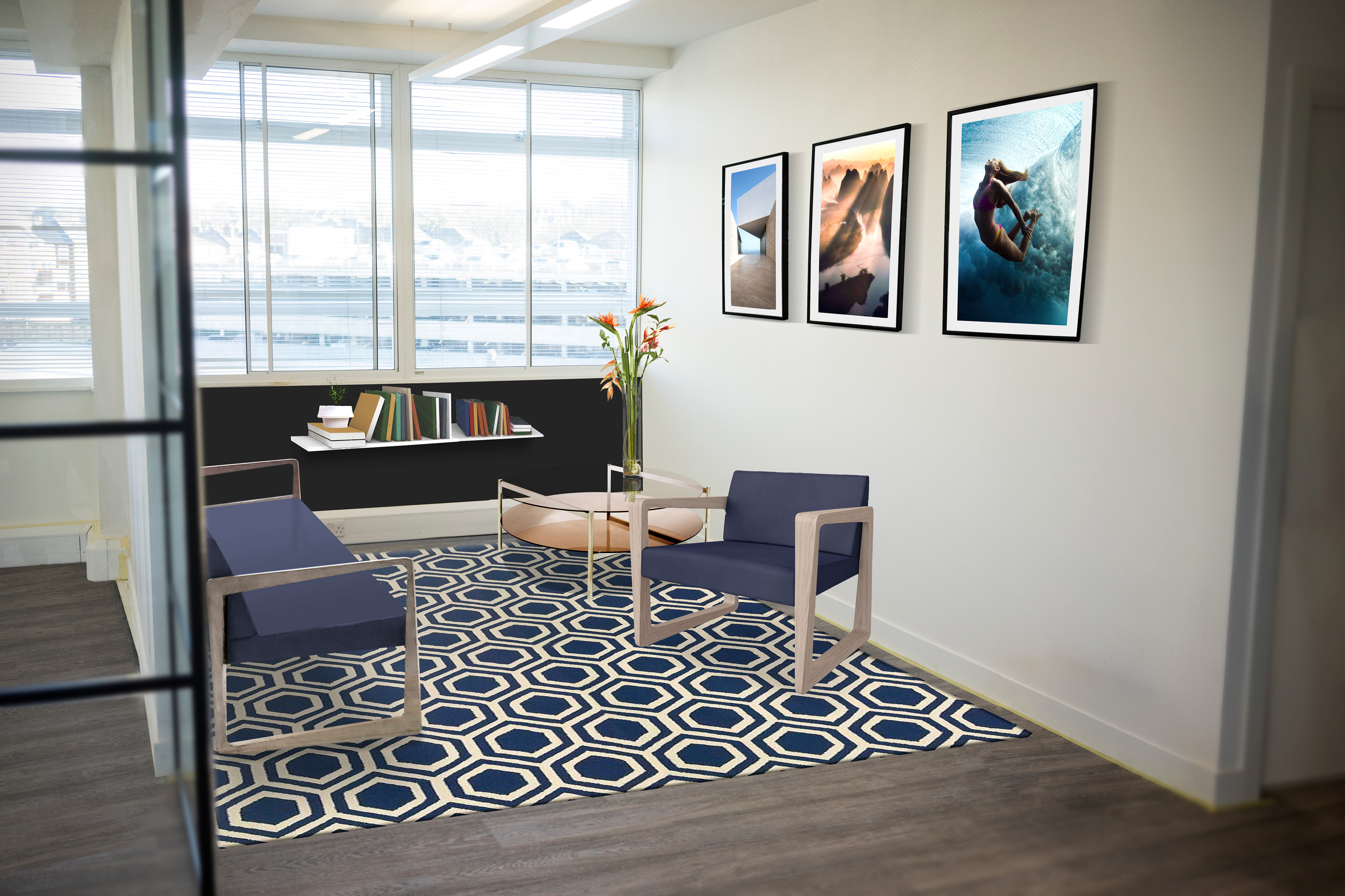 Styling for the waiting area at an experiential agency.